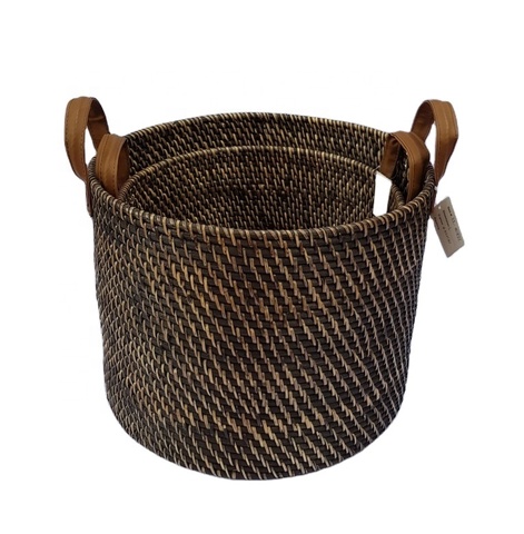 Keranjang rotan cucian dengan pegangan keranjang anyaman rotan kerajinan cocok untuk penyimpanan rumah dan organisasi dari Vietnam