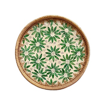 Plateau rond en rotin fait main écologique avec accessoires de cuisine vente chaude 2023 fabriqué au Vietnam